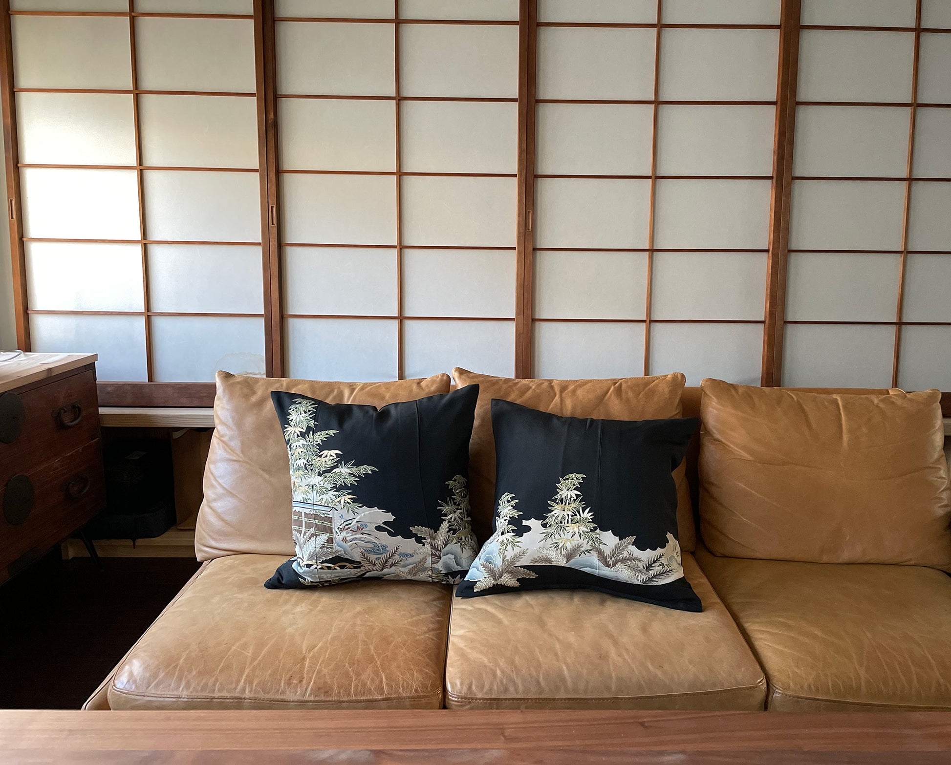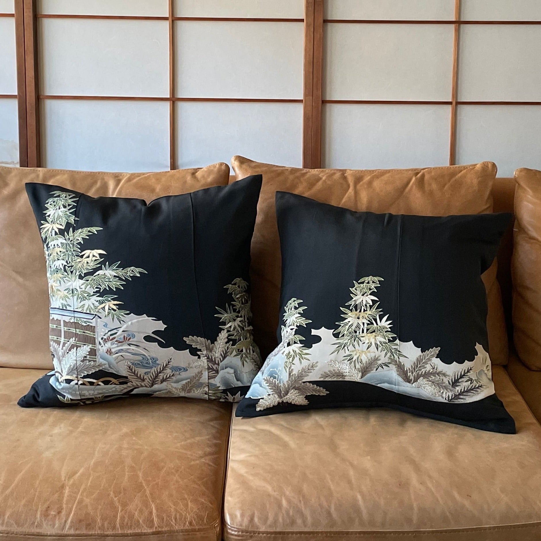 黒留【垣文様】アンティーク クッション(2個/セット)