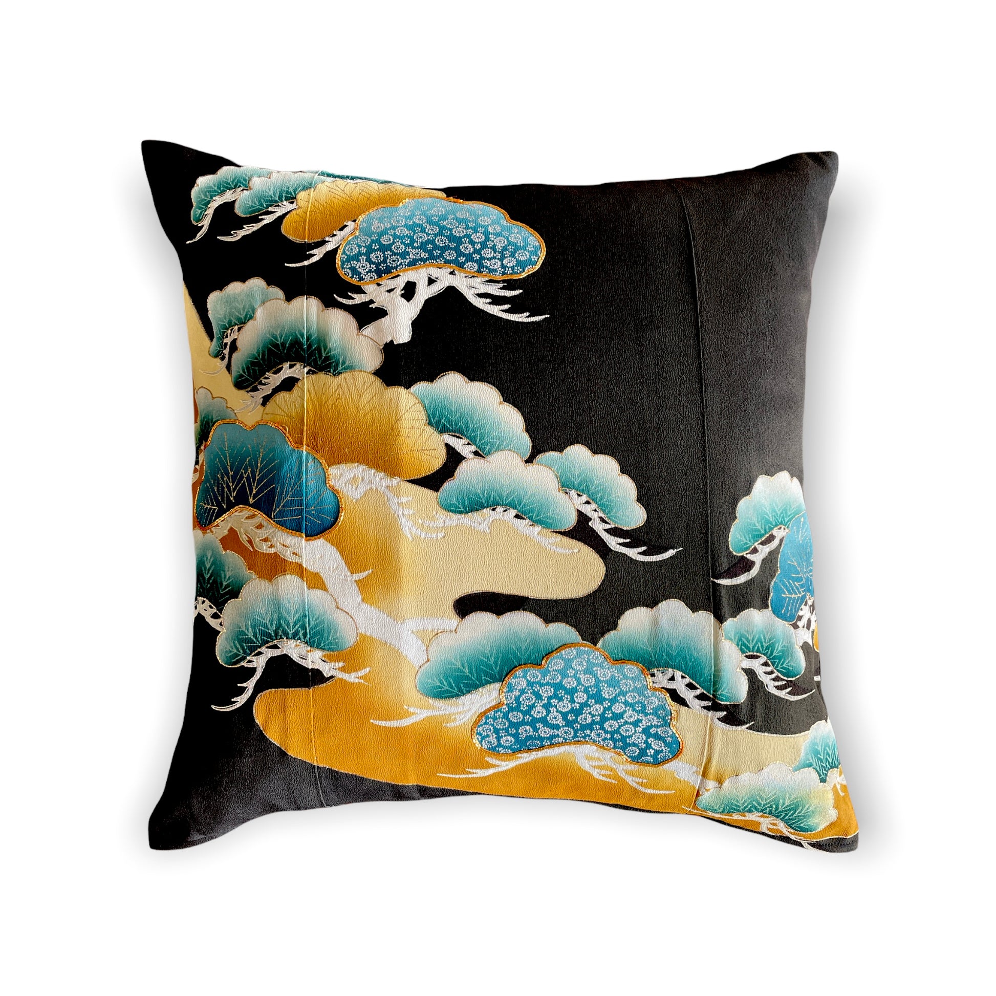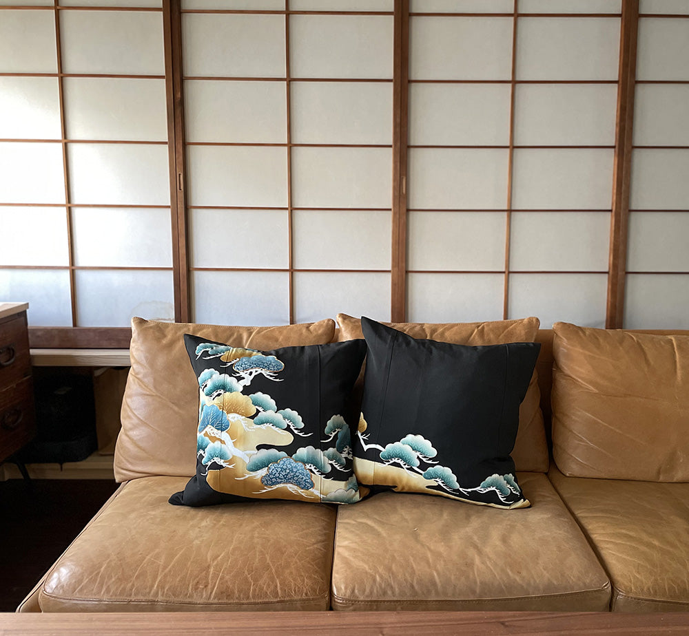 同じ松を用いた文様でも多様な種類があり、こちらの図柄は『笠松』と言い、松葉の繁る枝を笠に見立て、幾つか重ねる事で重厚感を出すなどの工夫があるようです。
